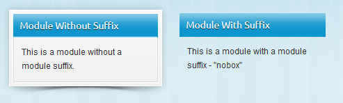 If you return to the front end of your site, it will appear that there is no difference at all. Below is an image of two modules, one without a suffix and one with a suffix.